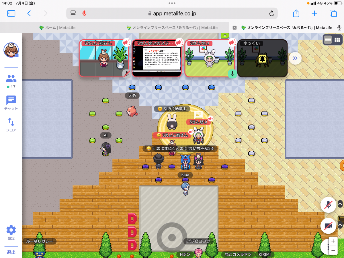 不登校児童生徒への支援のため、メタバース空間を活用したオンラインフリースペースを週に2回程度運営しています。