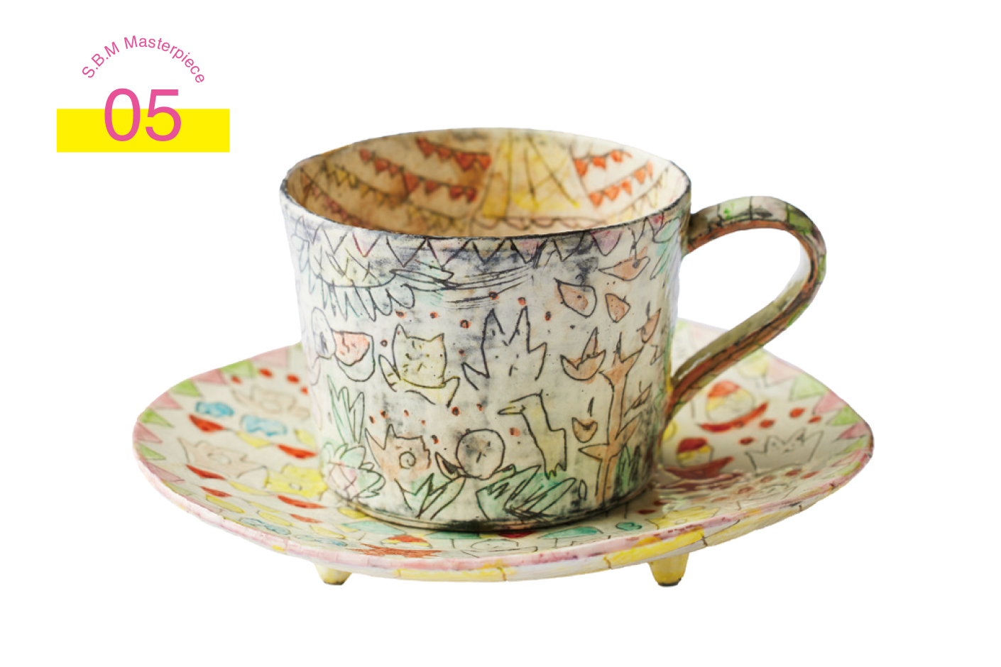 ワイワイ楽しげな動物たちが集まっている絵付けがかわいいマグカップ。九谷焼窯元で修業した技術をもとに成型を行っている大阪の作家さんで、クスッと笑える動物モチーフの器や小物などを制作されています。
