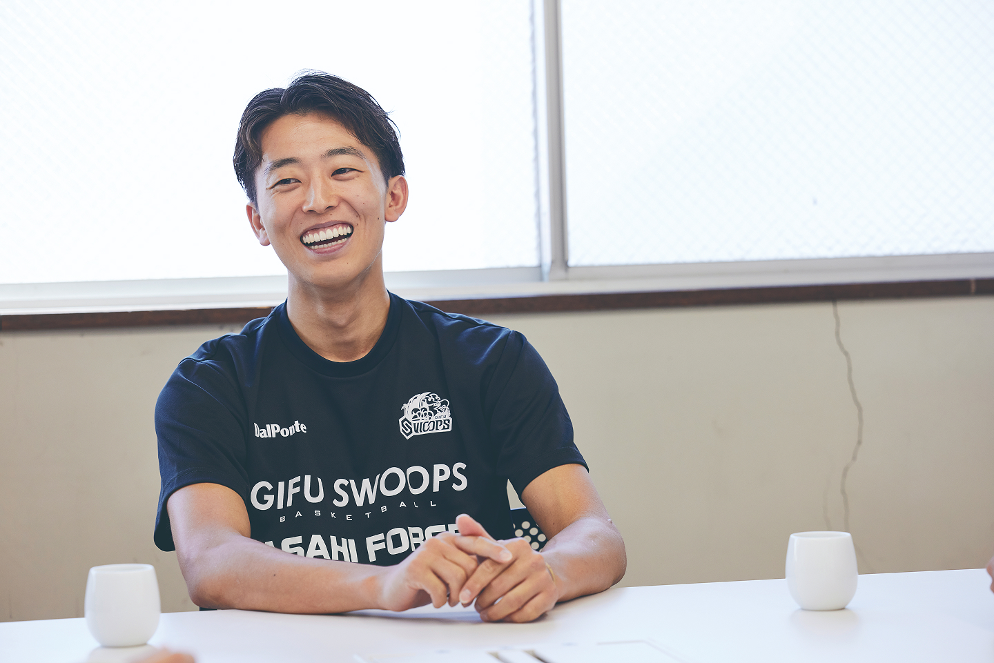 ■大久保:先ほどお話ししたように岐阜スゥープスには熱心なファンの方が多く、観客数も年々増えているのですが、まだまだ地域に根付いている途中だと思います。ぜひ一度試合会場に足を運んでいただいて、僕たちの試合を観ていただきたいと思います。バスケットボールの試合は室内で行われるので、音響などの効果もあってライブ会場のような盛り上がりがあります。そういう会場の雰囲気も楽しんでいただきたいですね。