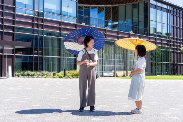 和傘を通して光が差し込む瞬間の美しさは、大人も子どもも心が浮き立つ体験です。娘たちや私も和傘を持って広場で写真を撮り、和傘の美しさに触れることができました。