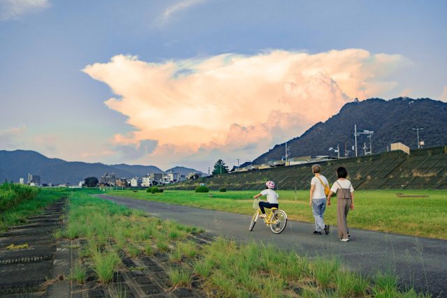 犬を飼っていた頃は、川原をよく散歩しました。川原から見る広い空に沈む夕日や、夕暮れの河川敷に待宵草の黄色い花がぽつりぽつりと咲き始める景色は、岐阜市で暮らす幸せをしみじみと感じさせてくれます。