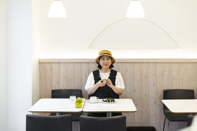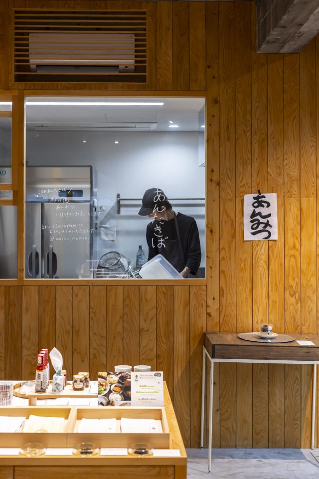 店内の一角にある「あんたきば」は、まっちんさんの工房として設けられたスペースで、不定期でつくりたての和菓子を販売しています。この日は季節限定の「あんみつ」の販売日。もちろん甲斐さんも購入し、早速食べてみることに。