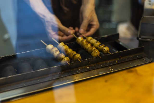 おはぎや草餅、豆大福、鬼まんじゅうなど、手づくりの和菓子が並ぶ中でも、看板メニューはお団子。甘辛く味付けされた「みたらしだんご」と、飛騨高山風の「しょうゆだんご」があり、店内のイートインスペースで焼きたてが味わえます。