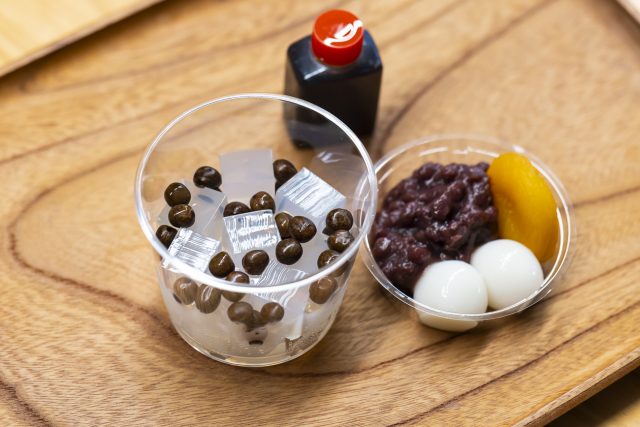 「何もかけずに食べると豆の風味が感じられて良いですし、黒みつをかけても美味しい。しっかりとした歯応えの寒天やもっちりとした白玉など、さまざまな食感が混ざっていて、とっても美味しかったです!」