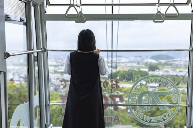 餃子飯店を後にして、訪れたのは岐阜公園。期間限定で開催されている「岐阜城パノラマ夜景」でライトアップされた岐阜城を目指して、「ぎふ金華山ロープウェー」に乗り、金華山の山頂へ向かいます。