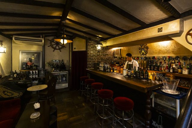 金華山からの夜景を楽しんだ後、1日目の締めくくりとして訪れたのは、茶色いレンガ造りの建物が印象的な「貿易風ミグ」。1951(昭和26)年に創業された「Bar貿易風」を現マスターの湯沢久雄さんが2014(平成26)年に引き継いで営業しています。